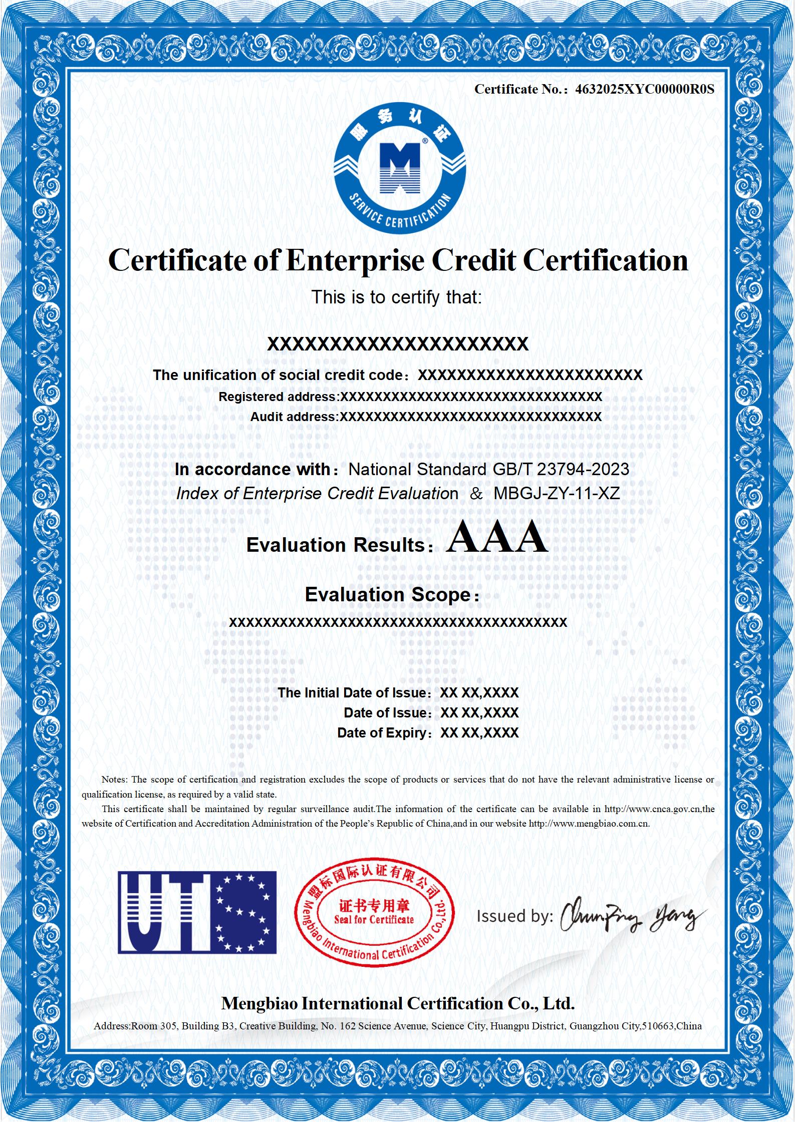 企業(yè)信用認(rèn)證證書(shū)——中文版證書(shū)
